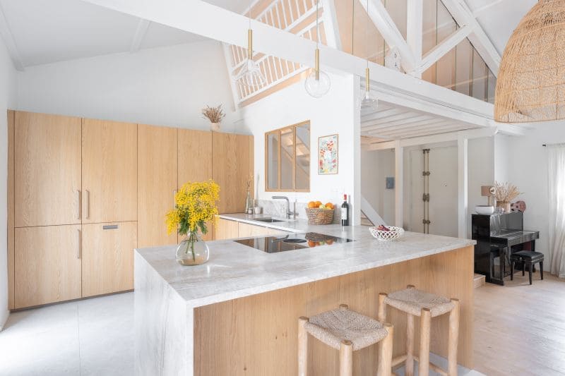 Ouverte sur la pièce de vie, elle a été pensée par notre équipe comme un espace lumineux et chaleureux, où l’on cuisine autant que l’on se retrouve. 😍