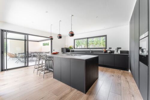 Cette cuisine full black LEICHT, avec son îlot central et ses lignes épurées, a été pensée pour offrir à ses propriétaires un espace à la fois élégant et contemporain. 😍