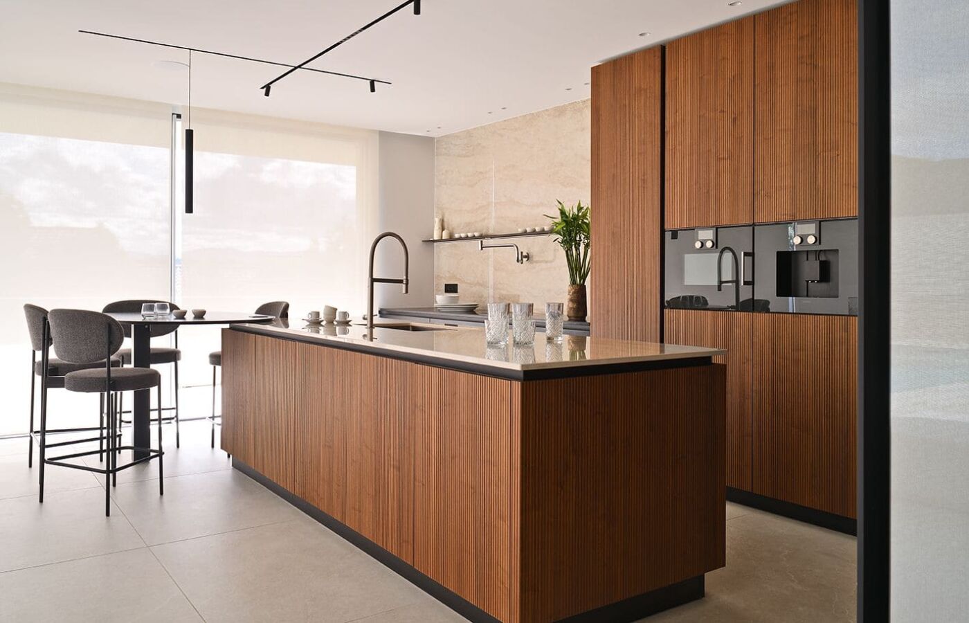 Aux côtés de Sébastien Belle, Architecte renommé, notre équipe EXPO 5 a conçu une cuisine LEICHT Küchen AG, modèle BOSSA NOYER CANNELÉ, à la fois chaleureuse, élégante et contemporaine.