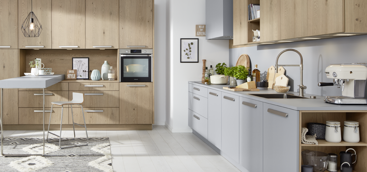 N’hésitez pas à intégrer votre four en hauteur dans un meuble colonne pour éviter de vous baisser de manière trop fréquente. De même, prévoyez suffisamment d’espace de chaque côté de l’évier pour pouvoir y déposer la vaisselle et autres ustensiles dont vous auriez besoin. Un joli plan de travail, c’est bien, mais un plan de travail adapté à votre taille, c’est mieux ! Il est essentiel de prévoir ce détail lors de l’élaboration de votre cuisine pour vous éviter d’éventuels maux de dos dans le futur.